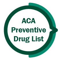The ACA Preventive Drug List is a list of prescription drugs covered at 100% by the Whole Health Plan, as required by the Affordable Care Act (ACA). All prescription drugs on the ACA Preventive Drug List are contained within the Whole Health Plan’s Core Formulary.
